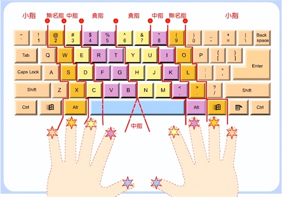 接下来需要了解每个按键需要用哪个手指敲击。