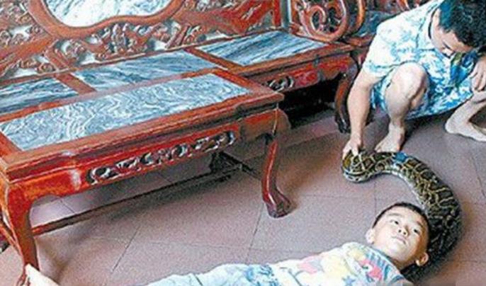 如今这条蟒蛇会帮黃开宁照顾小孩,看护家门,几乎就是黃开宁家的保镖级人物。黃开宁家里的小孩和蟒蛇玩的也很开心,他觉得这条蟒蛇是上天送给他的礼物,给他带来侥幸。
