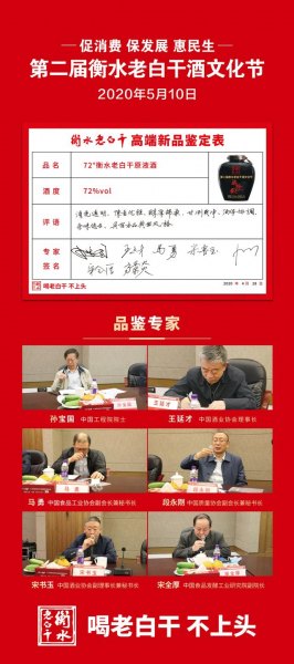 这支专家团队由行业重量级嘉宾组成,几乎代表着中国酒业的最高水平专家团,有着中国酒业最严格的“味蕾”。经过现场十分严格的品评之后,专家委员会一致认为衡水老白干72度封坛原液酒“清亮透明、陈香优雅、醇厚绵柔、甘洌爽净、酒体协调、余味悠长、具有本品典型风格”。