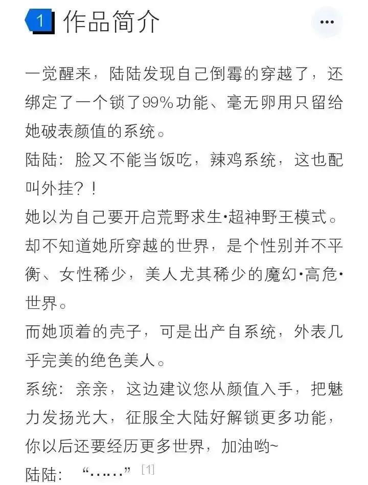 开头基本上都是女生一个人在什么森林里面,然后自己一个人,女性比较稀少,女生有的有金手指有异能,没有这些的呢,就要有骑士,总之都是喜欢她的。