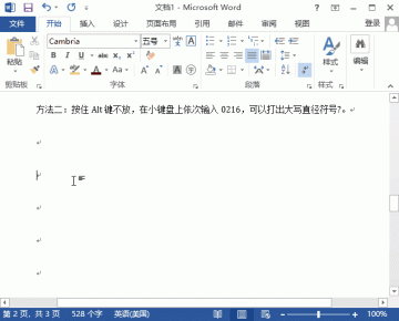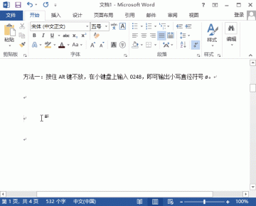 按住Alt键不放,在小键盘上输入0248,即可输出小写直径符号ø。