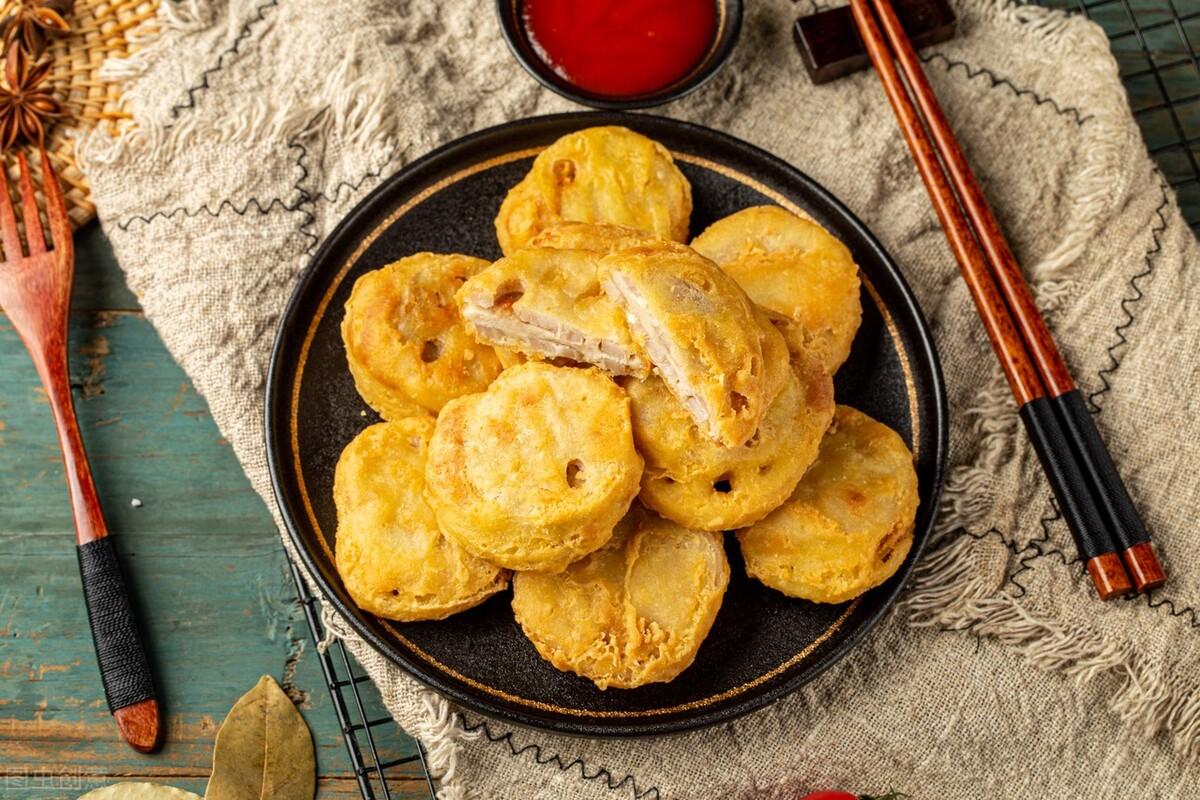 炸藕夹的面糊怎么调才能酥脆?用这3样,外酥里嫩,鲜香不油腻,比买的好吃