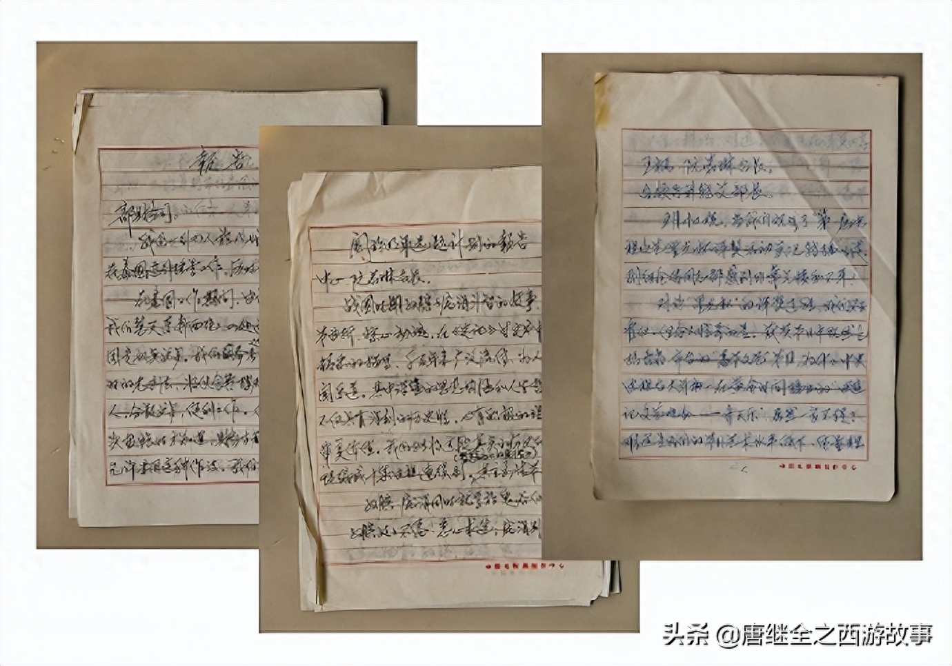 上面这是拍摄后两年我为剧组写各种报告的手稿,之前是场记马丽珠写,马丽珠字写得非常好,因为后期她忙不过来,改我来写。我的字太潦草,复印完成稿只好一笔一划认真写了。