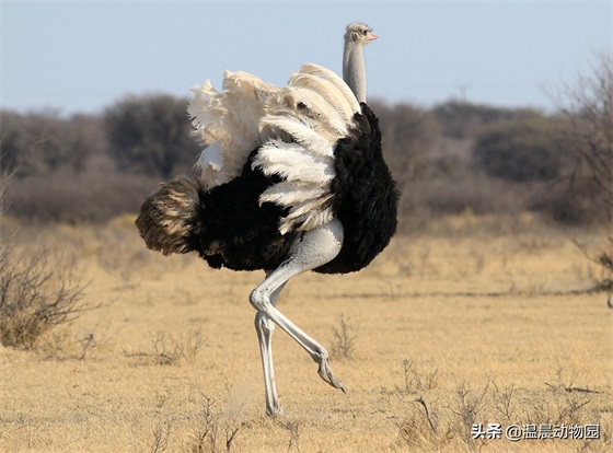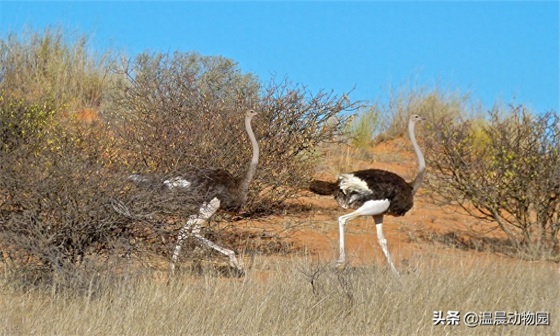 毕竟天气炎热干旱,能省点力气隐藏起来最好,但是如果掠食动物没被骗到,或者借助掩体悄悄靠近了鸵鸟,那么接下来就是鸵鸟的第二策略了——跑。