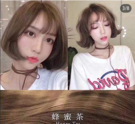 也是一个不需要漂就可以上色的发色,刚染完可能颜色会有点点深,不过洗几次头之后冷色系的感觉会淡一点,所以冷皮,暖皮都适合的一个颜色。有点韩剧女主的感觉,喜欢韩风的妹子可以试试这个发色。