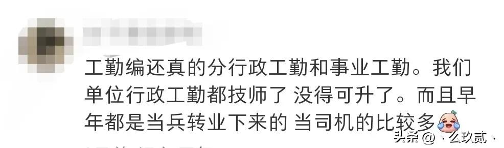 工勤编还真的分行政工勤和事业工勤。我们单位行政工勤都技师了没得可升了。而且早年都是当兵转业下来的当司机的比较多