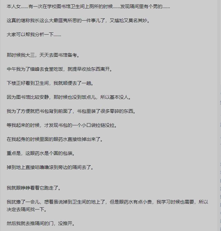 我去我媳妇学校的时候,误入图书馆女厕所,幸好人少。拉完粑粑偷摸出来了。