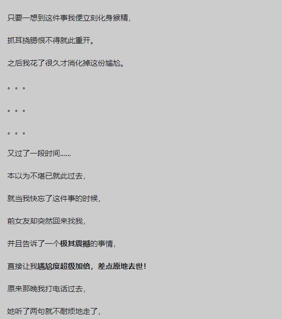 你是否有过那样的经历,一件事让你尴尬至极,每每想起都恨不得找个地缝钻进去?我就有过这样的经历,那次的尴尬遭遇至今让我难以忘怀。那么,究竟发生了什么让我如此尴尬呢?今天,就让我来分享这段令人啼笑皆非的故事,看看你有没有类似的经历。