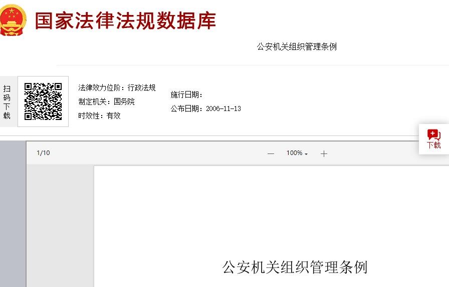 国家法律法规数据库 《公安机关组织管理条例》