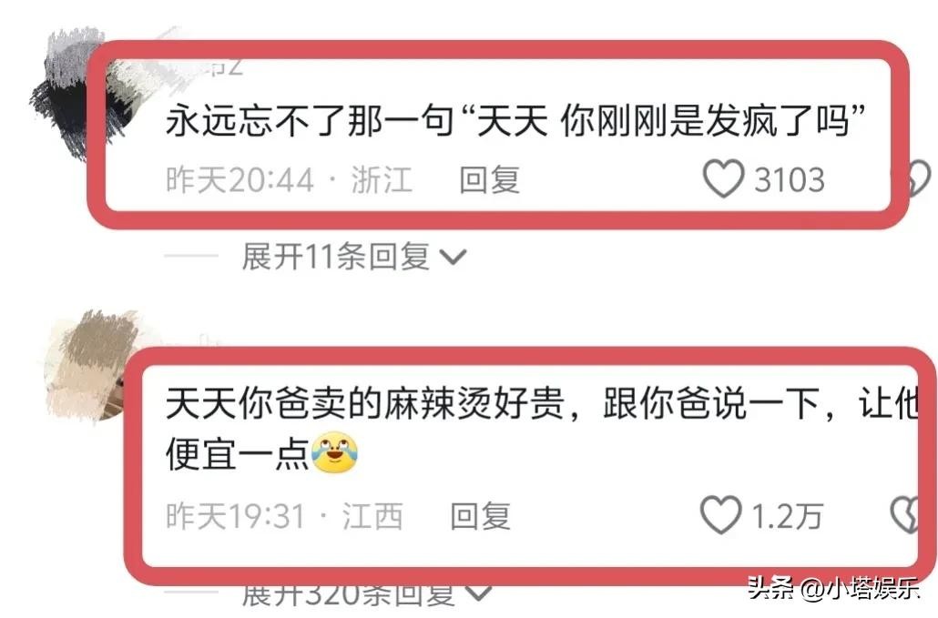 有的还开玩笑说让张天天以后子承父业:开个麻辣烫店,唯一一点要求是把价格给大家打下来!