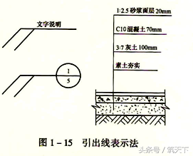 用细实线绘制,用来注释图纸上某一部分的标高、尺寸、做法等的文字说明。主要是图面上的书写部位尺寸有限,而用引出线将文字引到适当部位加以注解。