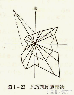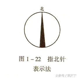 在总平面或首层平面上表示建筑物的朝向。主要在尖头处注明“北”字。