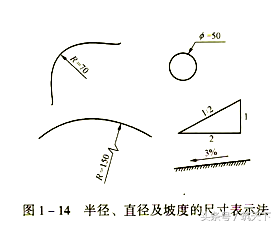 在图上表示各部位的实际尺寸。它由尺寸界线、起止点的短斜线(或圆黑点)和尺寸线所组成。(线性标注、半径、坡度等)