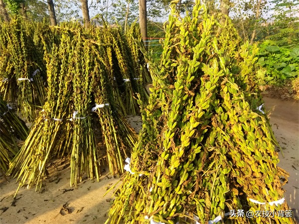 一般来说,当芝麻苗株上叶片从上到下大部分变黄掉落后(除了苗株顶部还有寥寥几片绿叶以外),并且苗株最下部有2-3个果荚轻微开裂、中部果荚已经充分膨大变硬、上部果荚也已经饱实灌浆后,这时候就说明到了芝麻的最佳采收期。