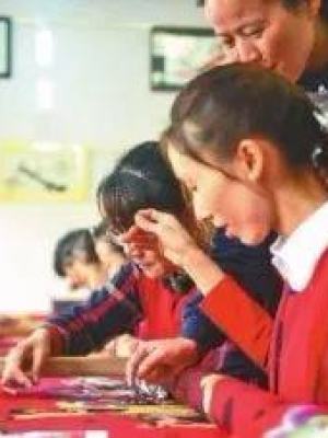 桃源刺绣传承人罗明华(右一)正在指导学员学习。光明二年级图片