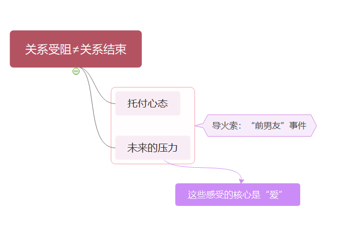 他们的矛盾在于无法平衡两个人的压力和需求,再加上前男友事件,让两个人把藏在心里的情绪一股脑地倾泻了出来,在极端情绪之下,提出了分手。