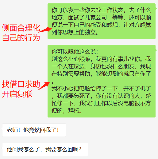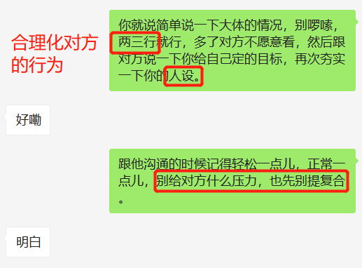 但是这里有一个前提就是,你要能掌握好他的心理变化,在对的时间,给到对方想要的东西,这样他才能主动地走出洞穴,跟你复合。