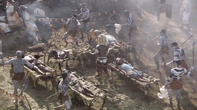 阿鸡一看就不干了,这不扯呢吗,哪有用修脚刀干这种事的,哪怕你像《鹿鼎记》中海公公似得,好歹人还给了韦小宝一把大锤呢。于是阿鸡勇夺修脚刀,在干掉了老大后,顺带还把小弟的根脉给断了个干净,那血腥的场面这里就不多说了,大家自行脑补吧。然后阿鸡质问女人为何如此不讲义气,怒火之下剪其舌挖其心。