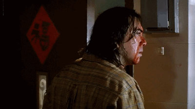 临走时阿鸡还想烧掉老大的女儿,结果因为被邻居撞见,所以匆忙之下逃亡非洲。要说这邻居演员不知道从哪找的,一脸嬉皮毫无惧色,如果单从这里看根本就和闹着玩似得。倒是黄秋生将一个变态演绎得淋漓尽致,于是才有了那张经典到令人发毛的剧照,他拿着一把修脚刀一脸是血鄙视前方。