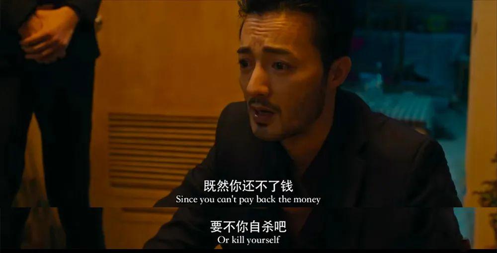 此时屋外走进一个邪魅的男人,他正是这群人的boss,名叫卡放(古斌饰),只见他一脸阴阳怪气地说:“既然你还不了钱,要不然就自杀吧。”说完笑得格外开心,人命在他口中卑贱得和蝼蚁一般。
