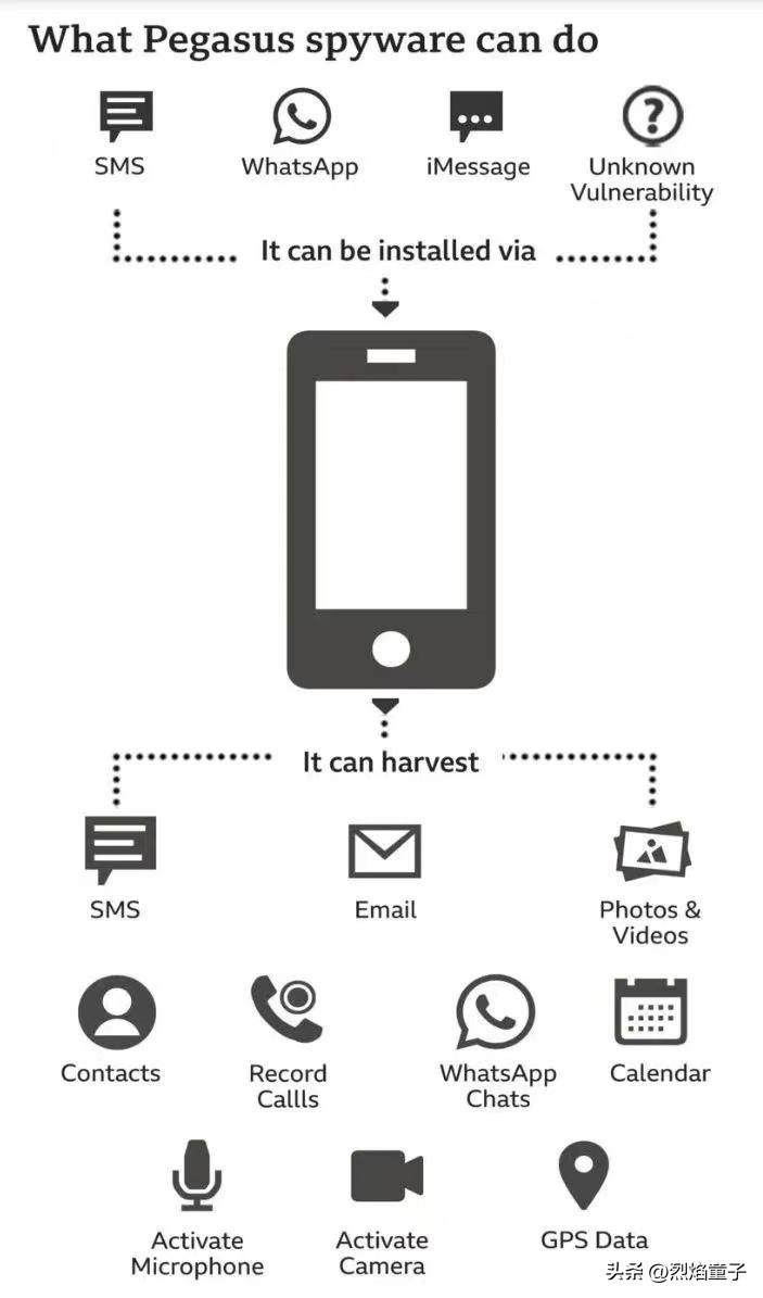它可以通过手机短信、一款被facebook收购的聊天软件whatsApp,苹果手机的iMessage,或者一些还不知道的系统漏洞,被悄悄安装到你的手机上,不管你的手机系统是android还是iphone。