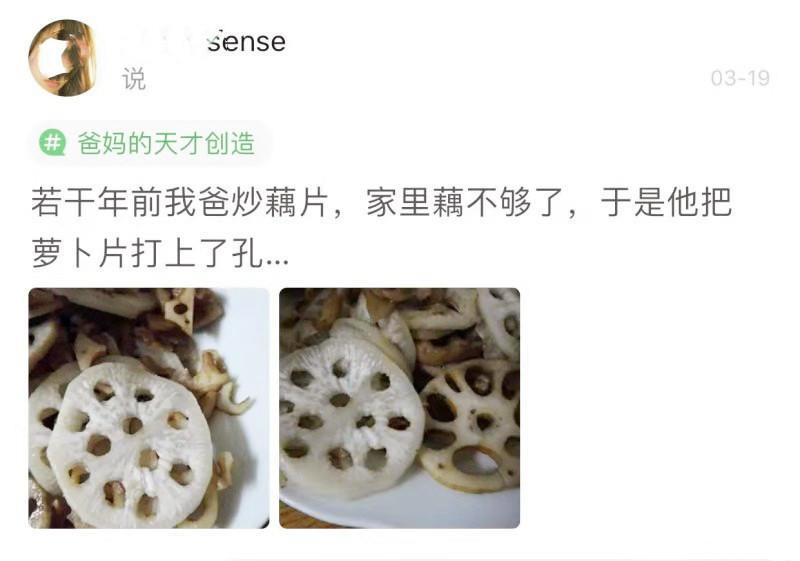 搞笑图片:这是她老爸亲手制作的“藕”,一片一片地打孔……