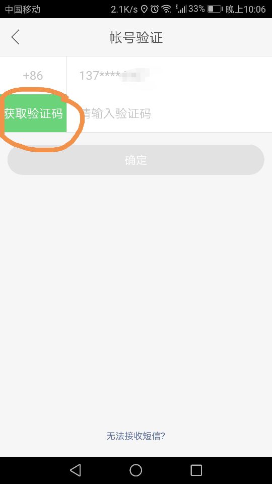 :账号验证。点击“获取验证码”,你的手机号会收到一个验证码,填上去即可。