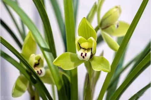 3、兰花:花朵开放在叶丛中,展示着独特的美丽,仿佛举止有礼的君子,它色淡香清,生于幽僻之处,故常被看作是谦谦君子的象征。