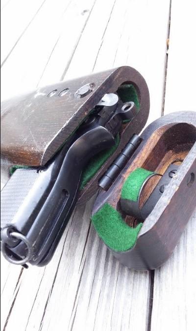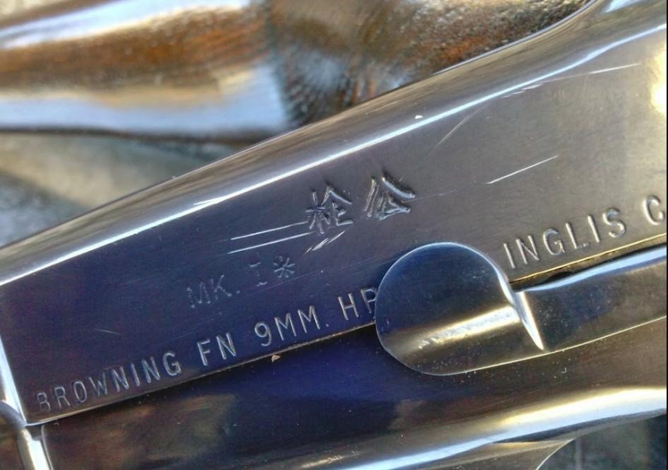 勃朗宁是在1926年开始设计,设计完成前的数年就与世长辞。附图是一把由加拿大安大略省多伦多约翰·英格利斯有限公司(John Inglis Co.)所生产的勃朗宁手枪,英格利斯从1944年开始生产的勃朗宁手枪大威力手枪具有两款版本:一种是装有固定式照门,另一种是具有可调节式切线式表尺照门并配有木制可拆卸式枪托。