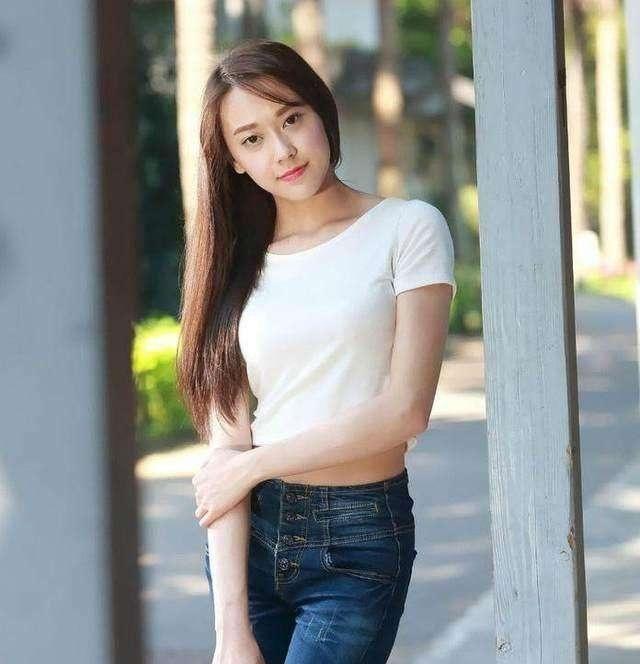 高挑饱满的美少妇,身材火辣,牛仔裤配白色短袖,性感十足。