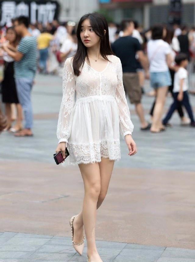 身材丰满的美少妇,身穿白色蕾丝连衣裙,显得更加妩媚动人。