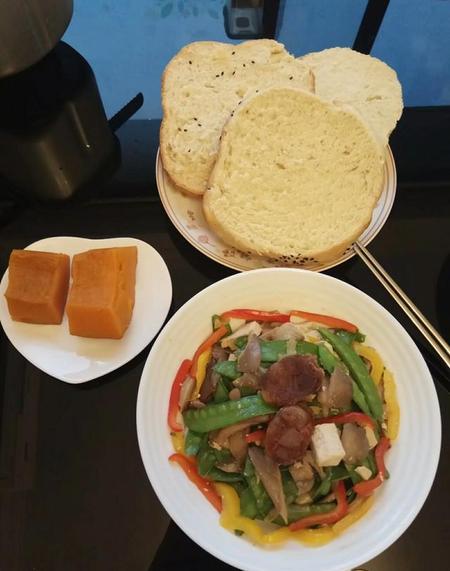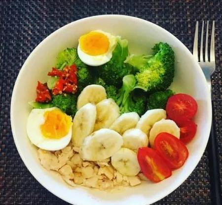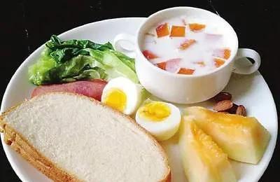 早餐:一份蛋白质(鸡蛋牛奶),一份果蔬,一份碳水。