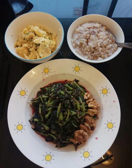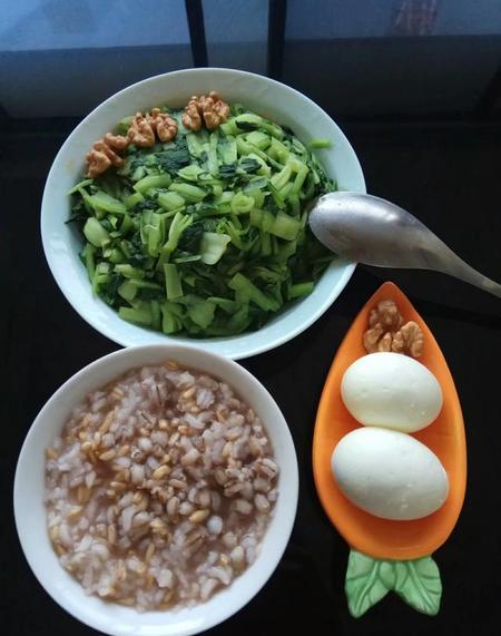 晚餐:水煮蔬菜,燕麦粥。