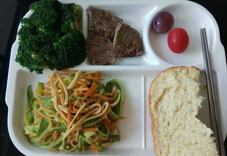 午餐:一份主食,一份蔬菜,一份蛋白质肉类,一份水果。