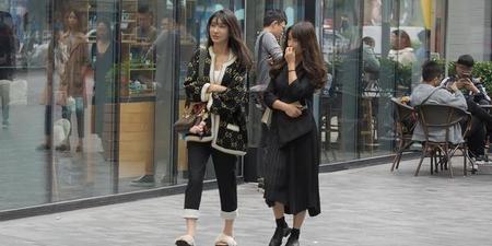 这两位长发飘飘的女孩子,整体造型现代时尚,非常适合逛街出行。