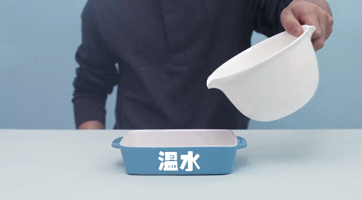 首先准备一个盆子,在里面倒上温水,把罐头倒置放进盆中,等待十几秒。