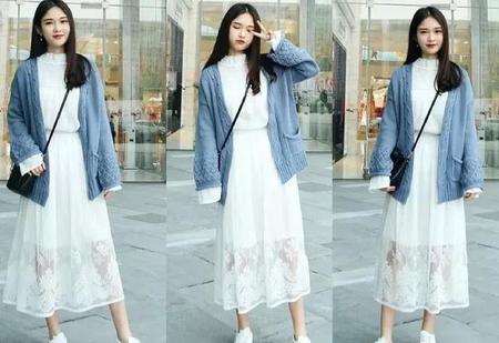 最常见的搭配就是用开衫来搭配蕾丝打底裙了。开衫搭配蕾丝打底裙给人的感觉温婉优雅,很适合偏淑女风的小仙女。