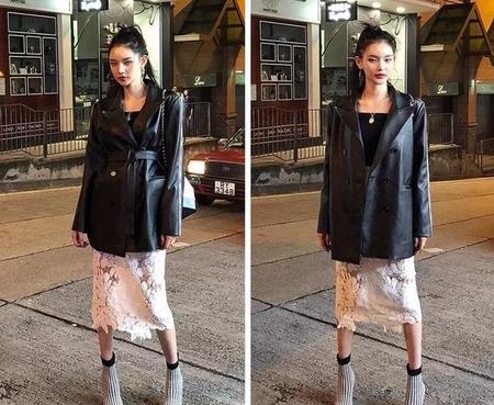 特别推荐追求时尚的宝宝们尝试一下皮衣来搭配蕾丝打底裙。酷酷的皮衣与温柔的蕾丝打底裙,两者相差如此之大的单品,搭配在一起却异常好看。