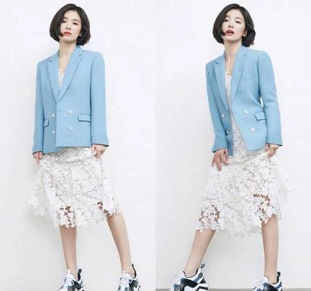 中长款蕾丝裙怎么搭配(浅蓝色配白色的效果图)