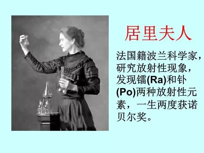 1898年12月,居里夫人又根据实验事实宣布,她发现了第二种放射性元素,这种新元素的放射性比钋还强,她把这种元素定名为“镭”。可是,当时谁也不敢确认她发现的这种新元素。因为按化学家的传统观念,一个科学家在宣布他发现新元素时,必须拿出实物来,并精确地测出它的原子量。而居里夫人的手里既没有镭的样品,也没有它的原子量。为了让同行们看到真实的样品镭,居里夫人需要在藏有钋和镭的沥青铀矿里去提炼,而当时这种矿物很昂贵。对于生活本来很清贫的居里夫妇来说,无法用足够的钱去购买。经过无数次周折,奥地利政府决定馈赠一吨残矿渣给居里夫妇,并答应若他们将来再需要的话,可以在最优惠的条件下供应。于是,居里夫人有了原料来源,他们夫妻日以继夜地在小屋里提炼,从1898年一直工作到1902年,整整4年时间,经过几万次的提炼,处理了几十吨的矿石残渣,他们终于得到了0.1克的镭,测定出它的原子量是225,镭宣告诞生了!居里夫妇证实了镭元素的存在,使全世界都关注放射性现象,掀起了一股放射性物理的研究和应用热潮。镭的实现在科学界爆发了一次真正的革命,动摇了传统物理学观念。居里夫人以《放射性物质的研究》为题,完成了博士论文。1903年,她获得了巴黎大学物理学博士学位。之后,她与丈夫双双获得诺贝尔物理学奖。人们称她为“镭的母亲”。为了找到镭,居里夫人的体重整整减了14斤。又由于长期接触放射性元素,她得了严重的贫血症。1906年,她的丈夫由于车祸去世后,她克制了巨大的悲痛,仍然坚持对放射性物质的研究,并撰写了《放射性通论》一书。