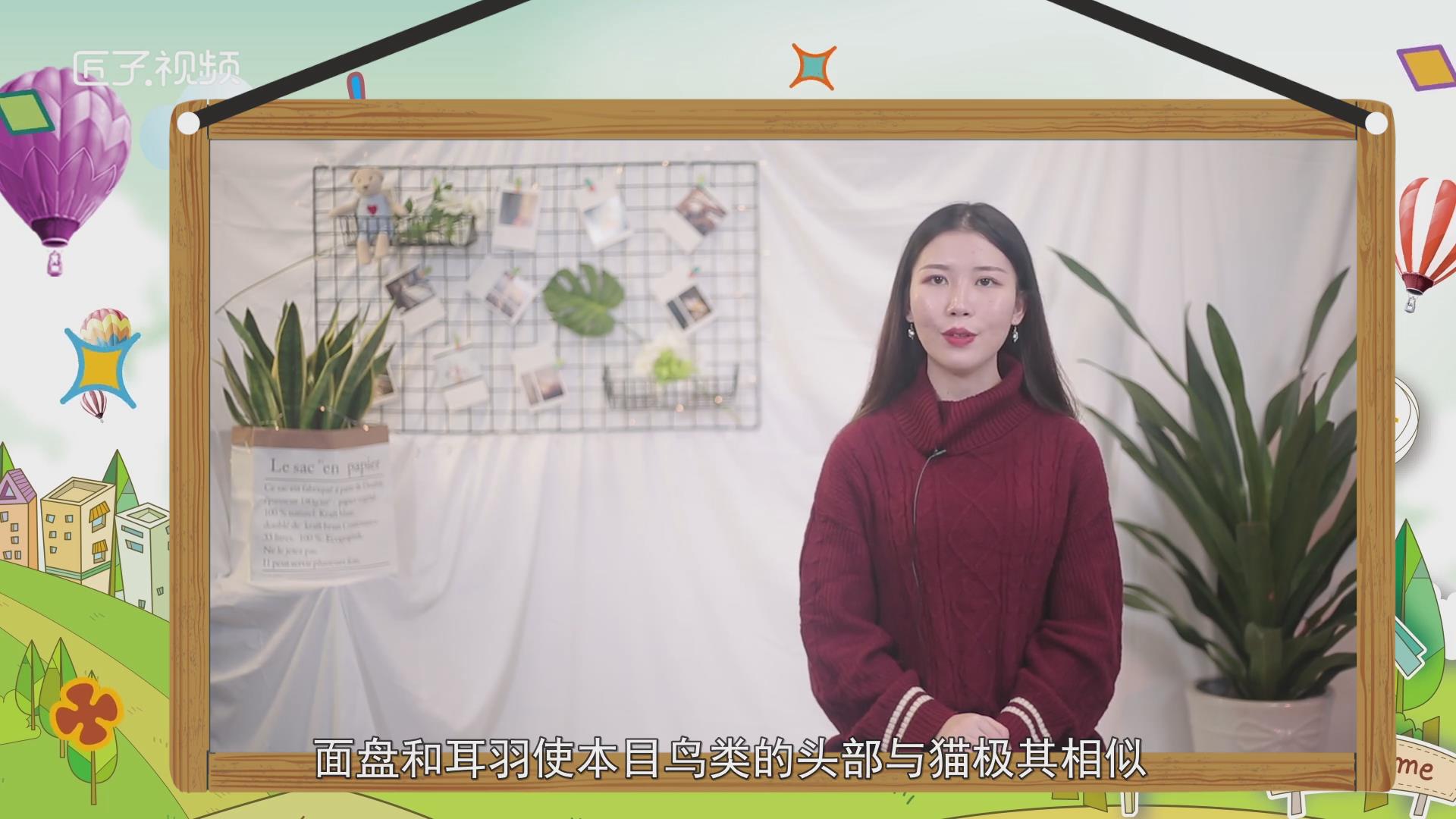 因其双目的分布,面盘和耳羽使本目鸟类的头部与猫极其相似,故俗称猫头鹰。猫头鹰的总数超过130余种,除南极洲以外所有的大洲都有分布。猫头鹰主要食鼠类,也吃昆虫、小鸟、蜥蜴、鱼等动物。由于猫头鹰的眼睛长在头部前方,不像别的鸟那样长在两边,因此它们想全方位观察四周情况时,只能不停地转动脑袋。