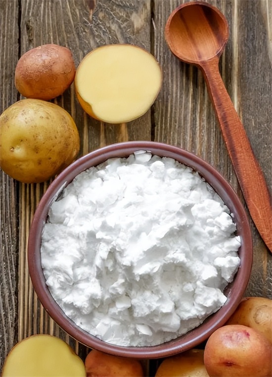 土豆淀粉也是比较常用的,颜色和玉米淀粉差不多,但是它和玉米的相比就是粘性比较好,透明度比较高,用它勾芡出来的汁水比较透明,而且比较黏,另外土豆淀粉就比较适合用来腌肉,腌制的肉就比较嫩滑。