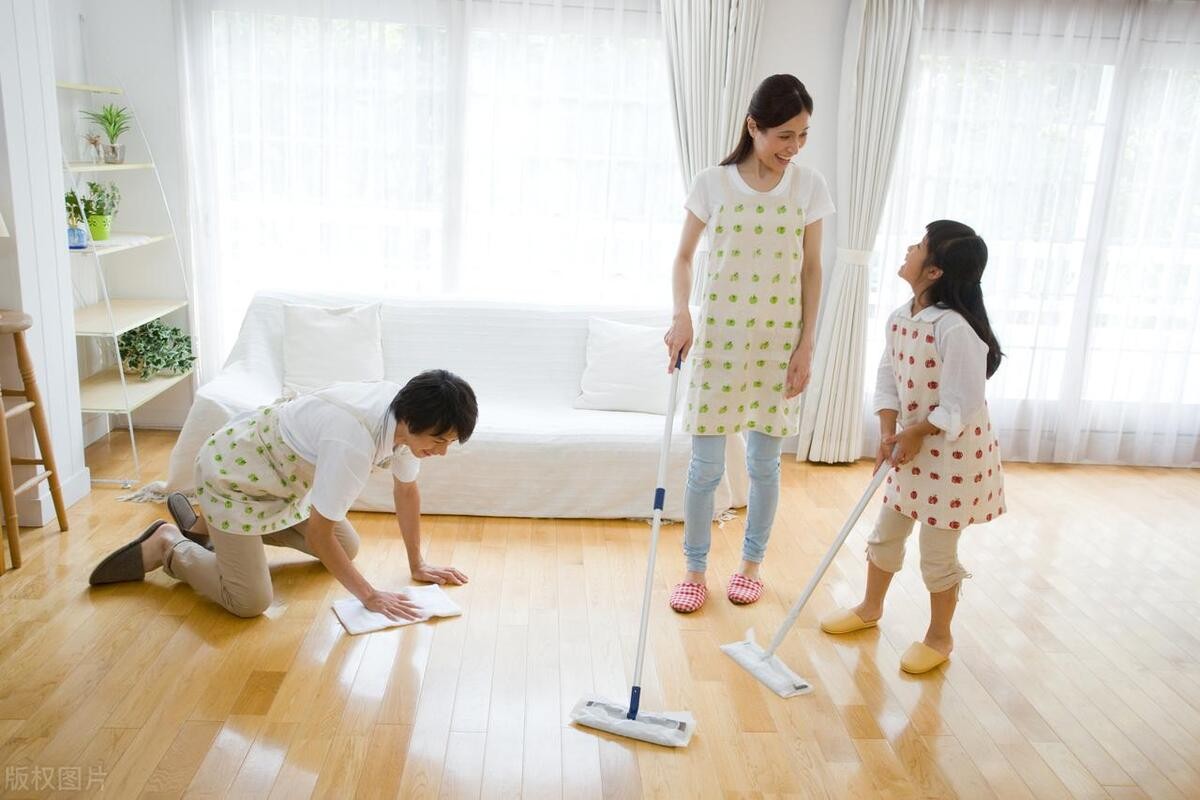 先擦拭高处的柜子顶部、空调、吊灯等,灰尘落下后再清扫地面。这样就不用反复清洁,能大大提高清洁效率。
