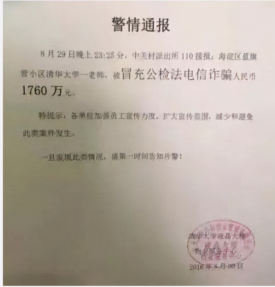 骗子冒充公职人员,以“偷税漏税”的名义威胁勒索,然后这人就把1760万转给了骗子。