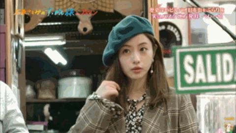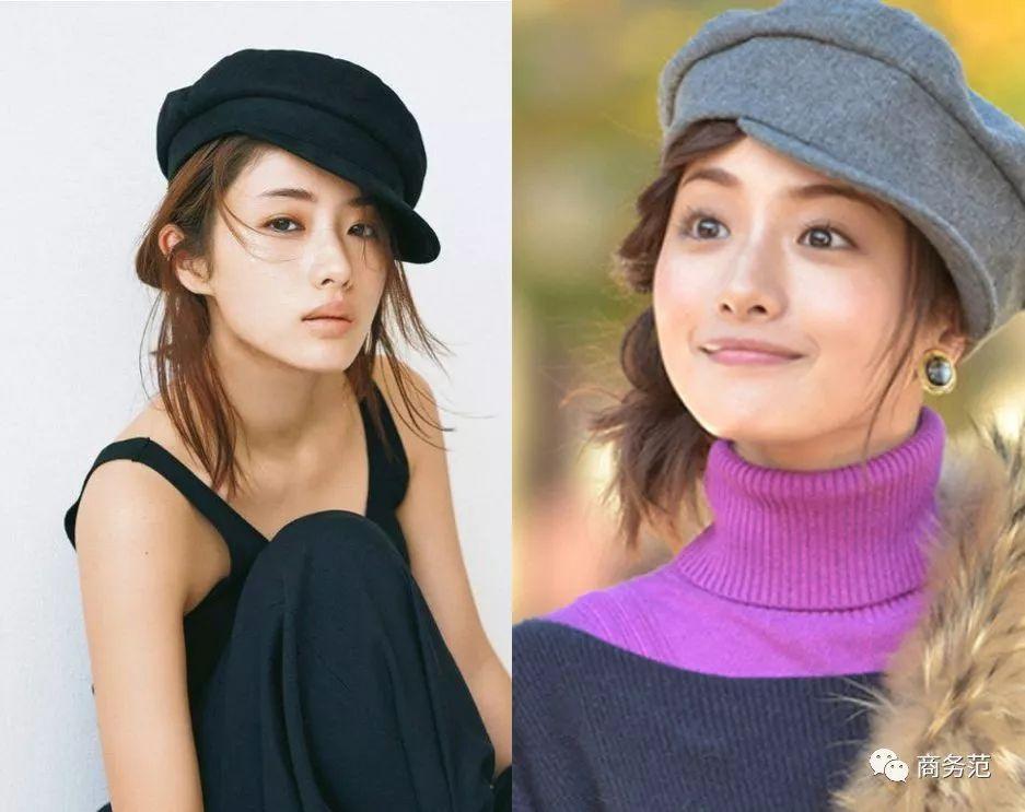 在佩戴贝雷帽的时候,帽子斜着戴能增加整张脸的看点,也是石原里美的一个小技巧,当然这种也是最常规的戴法。