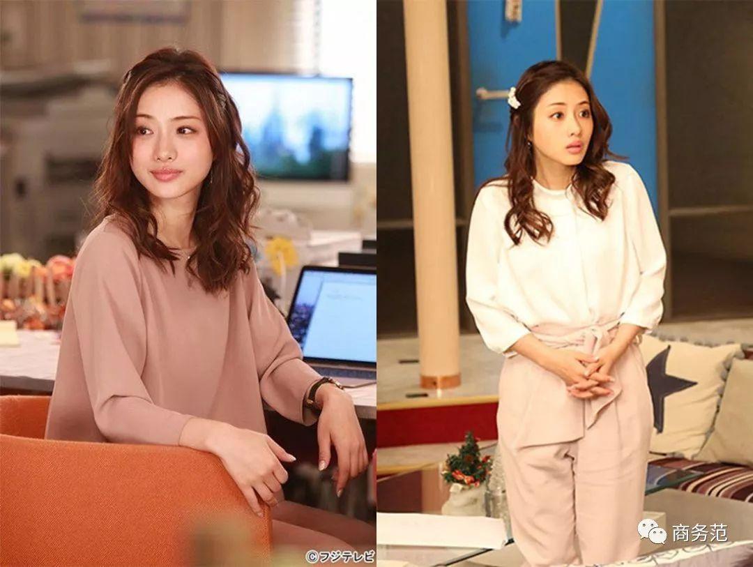石原里美演的职业装不会太花哨,看上去整个人会干净利落。款式上会比较固定,颜色上饱和度会比较低,而且以纯色为主。