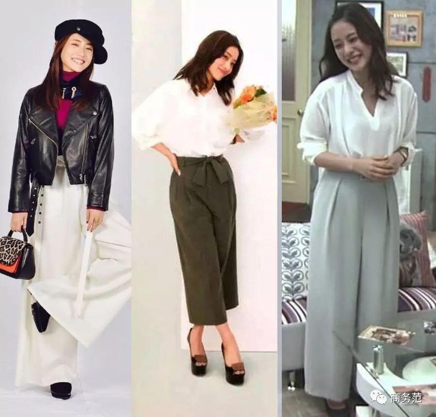 高腰的阔腿裤也是相同的效果,这里除了第一身,还都用了白衬衫来搭配。