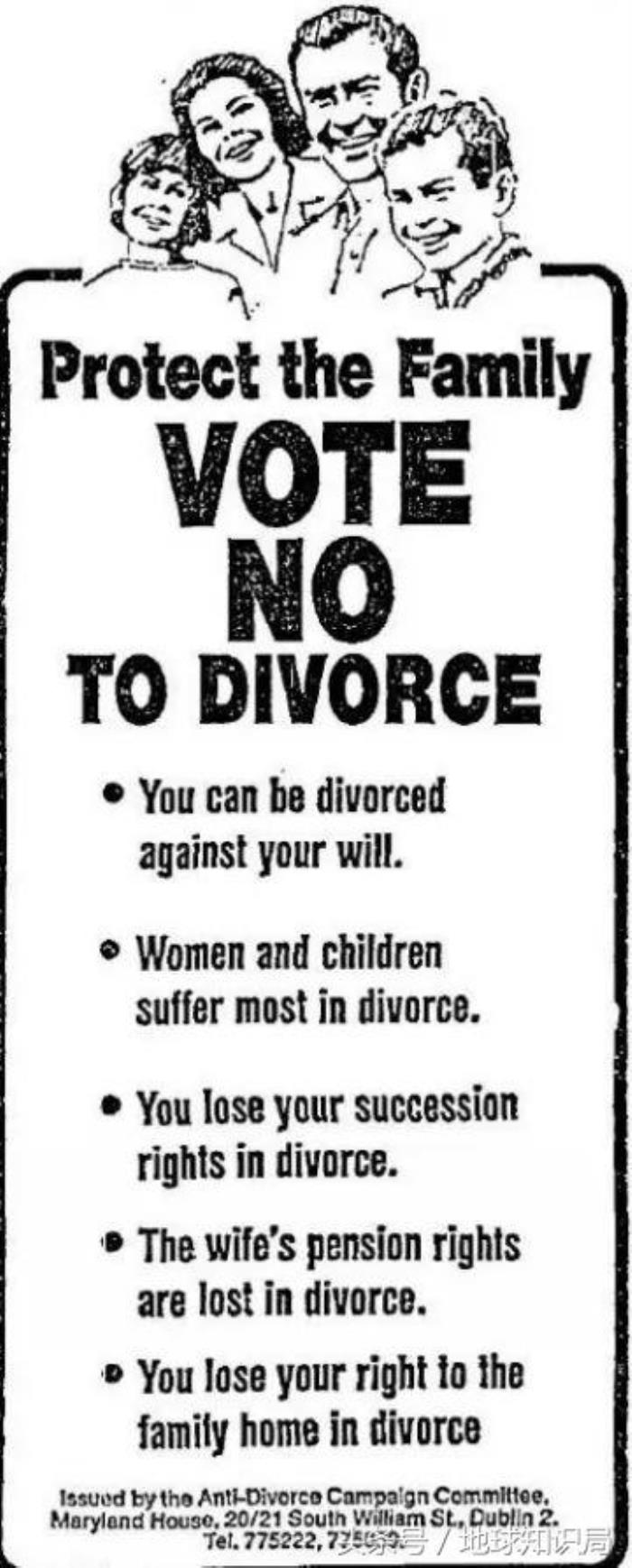 历史上,爱尔兰曾经确实不允许离婚,而且是明令写进宪法中的。
