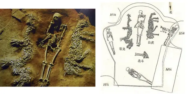 在同样距今6000多年的濮阳西水坡遗址发现的蚌塑龙虎墓,极有可能就是一幅星象图,与先民所掌握的天文知识相关,被认为将中国二十八宿体系的滥觞期提前了数千年。