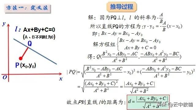 点到直线距离公式推导方法整理